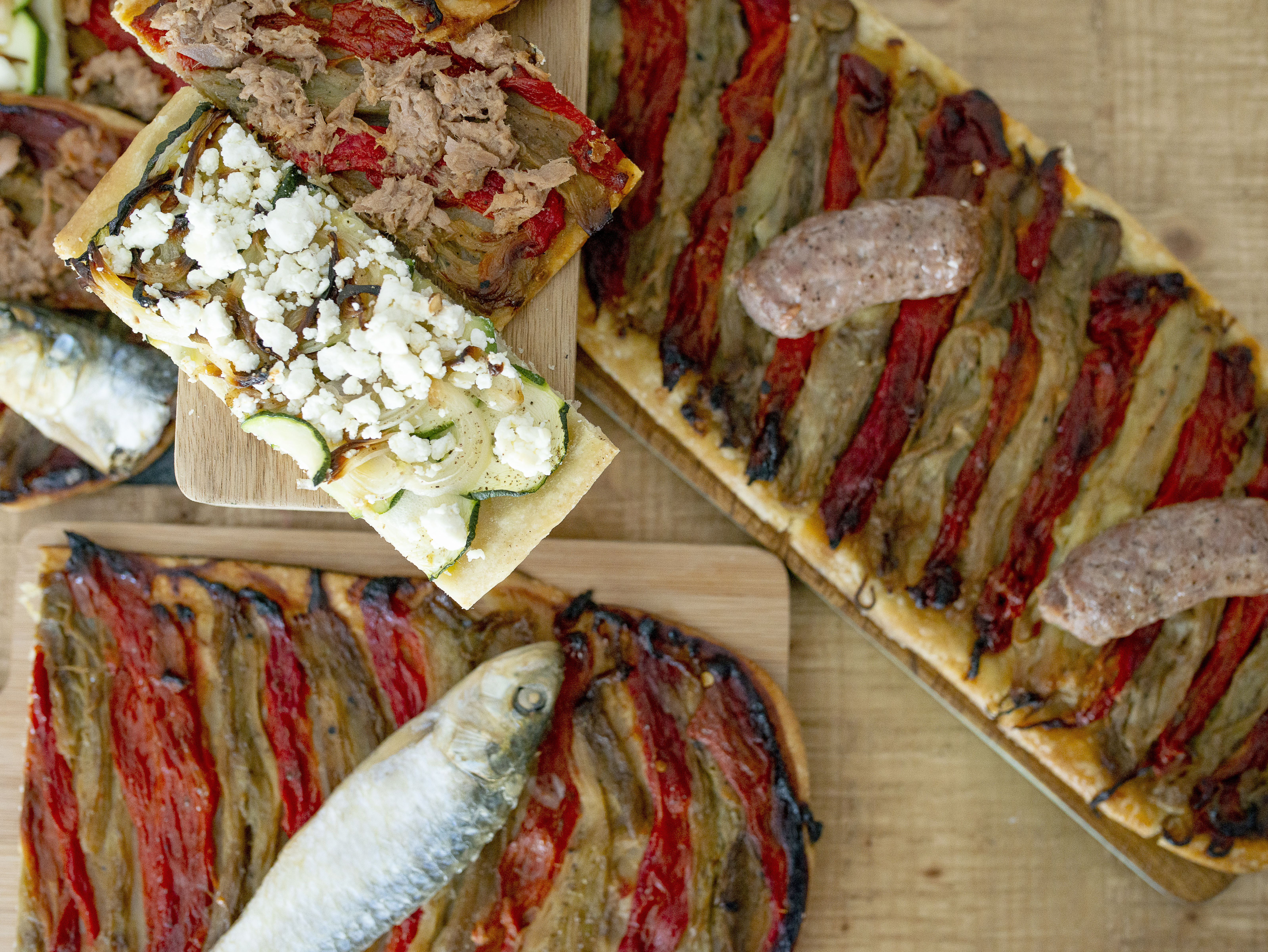 One of the most typical products prepared in the ovens of the city's bakeries is coca de recapte, a kind of flatbread which is topped with escalivada, tuna or cod and then baked.